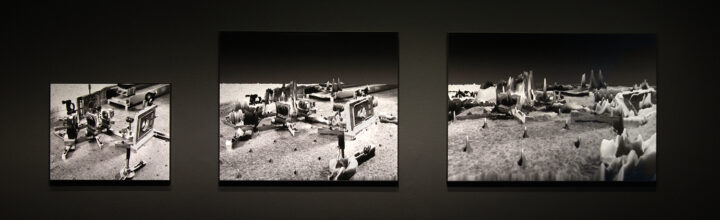 This project was born from the collaboration of the artist duo Flavien Théry & Fred Murie with the researcher Julien Fade (École Centrale de Marseille – Institut Fresnel – UMR 7249), as part of an Art & Sciences residency at the Foton Institute (Université Rennes 1 / CNRS). The original soundtrack composed by the musician Thomas Poli, broadcast during the exhibition, accompanies our stroll between the works, in an atmosphere conducive to immersion and contemplation.