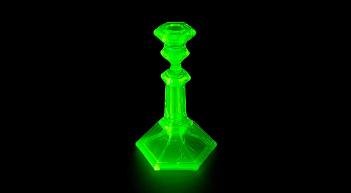 L’aura très particulière de ces objets, très en vogue au tournant des 19eme et 20eme siècles, s’explique en effet par la composition du verre, auquel était incorporé une certaine quantité d’uranium.