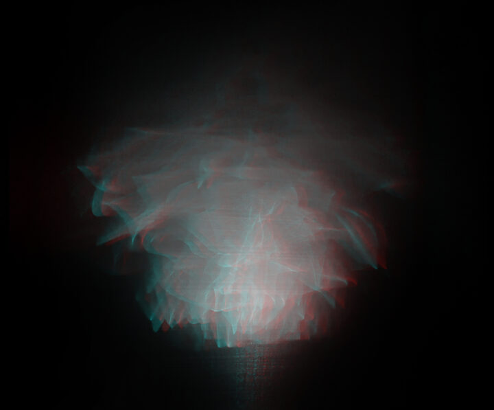 Projetant sur un écran la vision en relief stéréoscopique d’une forme étrange et mouvante, au caractère organique.