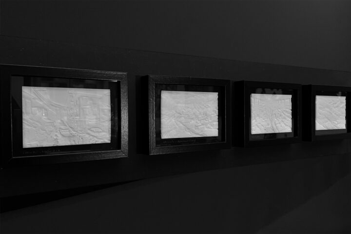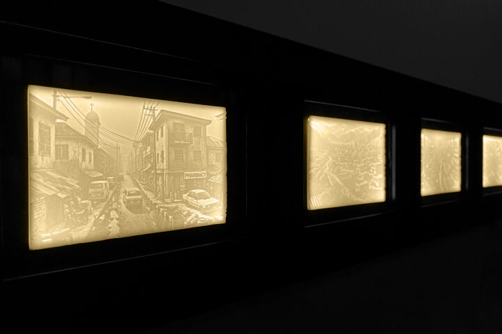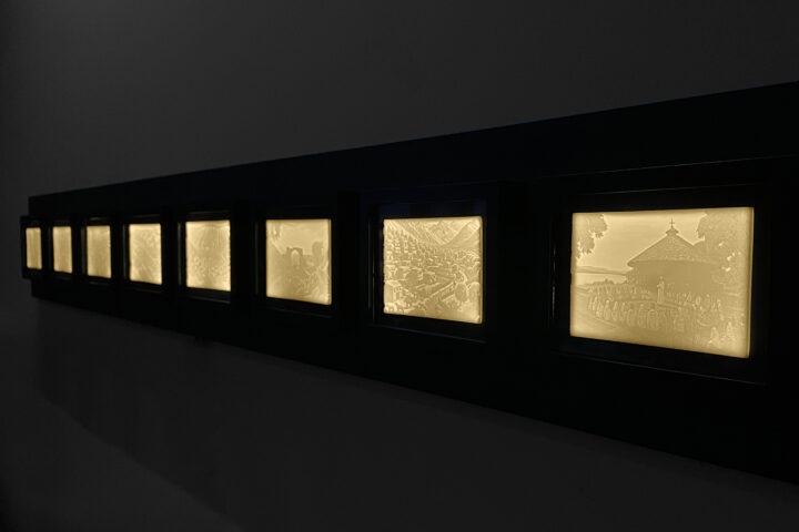 Les différentes scènes se matérialisent sous la forme de lithophanies, à savoir de fines impressions 3D dont la netteté de l’image se révèle par rétro-éclairage.